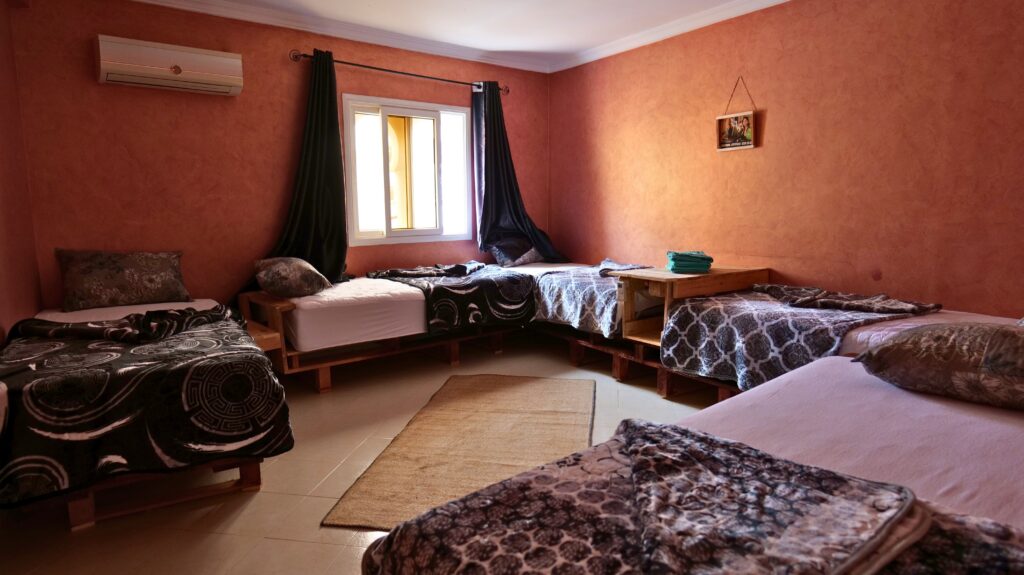 Spacious shared room with 5 single beds, just a short walk from Tamraght Beach. Perfect for surfers, backpackers, and groups looking for comfort, community, and beach vibes in the heart of Tamraght.